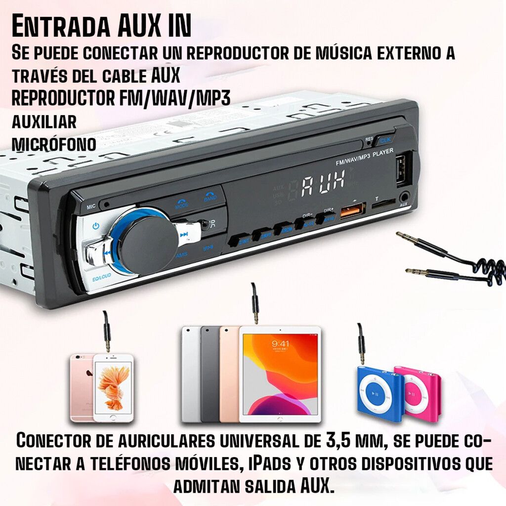 + Prestaciones: Sintonizador de Radio, Cargador, Reproductor de MP3/MP5, Bluetooth